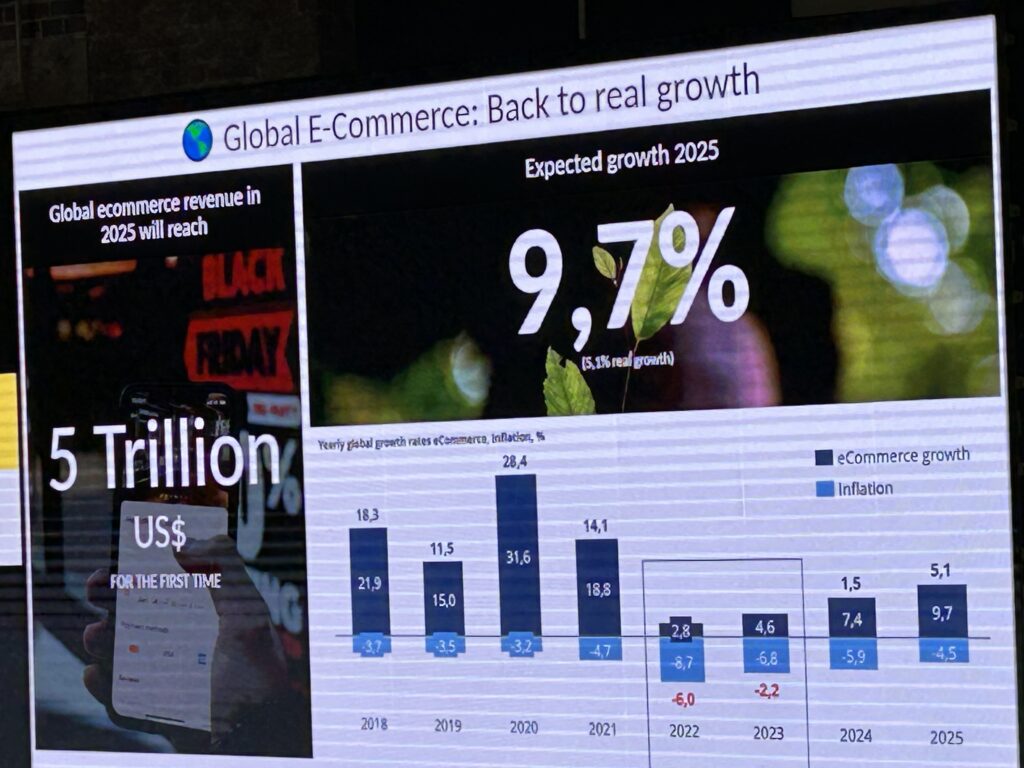 E-commerce Berlin Expo u ovoj prohladnoj veljači donio je puno optimizma, a taj se dojam podržava i statističkim podacima te optimističnim projekcijama za cijeli sektor. Naime, nakon pada u 2022. i 2023. godini te skromnog oporavka u 2024., za ovu se godinu predviđa pravi povratak eCommerce tržišta u pozitivne vode. Prema procjenama, globalni eCommerce prihodi u 2025. godini trebali bi dosegnuti vrtoglavih 5 bilijuna američkih dolara, uz ukupni rast od 9,7% (realni rast od 5,1 posto jer 4,5 posto “pojede” inflacija). Ono što je za nas važno je da se slični trendovi rasta očekuju i u Hrvatskoj.