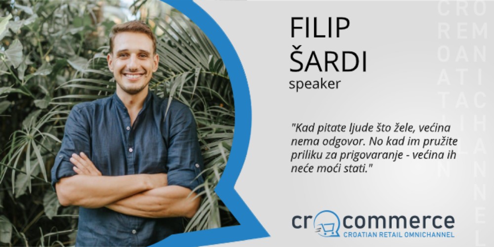 Filip Šardi jedini je speaker na CRO Commerce 2020 koji će govoriti o Customer’s journeyu, odnosno „koracima koje kupac mora napraviti prije i nakon što mu uzmemo lovu“. Svoj profesionalni razvoj započeo osnivanjem agencije za web dizajn i marketing. Radio je s velikim regionalnim klijentima kao što su Carlsberg, Gardaland, Arena Center, s.Oliver… Ujedno s timom pokreće web startup posvećen promociji hrvatskih modnih kreativaca – dizajnera, vizažista, modela i fotografa nazvanu „Krpa.hr“. Iako taj nekad popularan projekt vise nije aktivan, smatra ga ključnim iskustvom koje je definiralo njegovu daljnju karijeru.