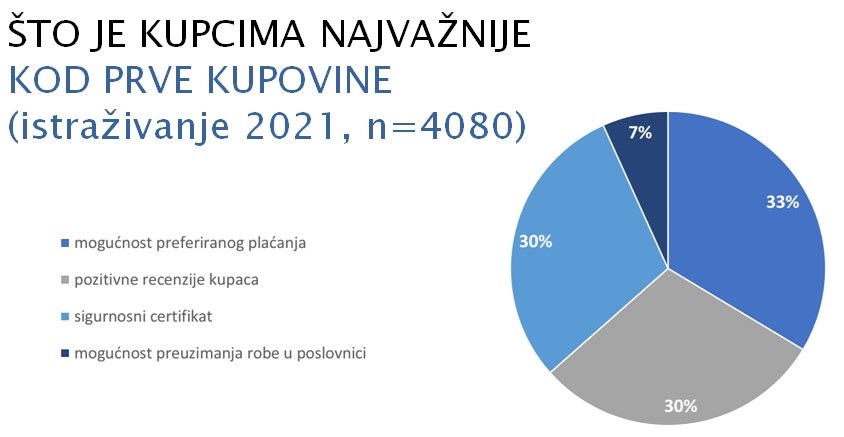 Kako bi se povećalo povjerenje kupaca, u cijelom svijetu se formiraju oznake povjerenja, koje se dodjeljuju samo provjerenim trgovcima. Koliko je važno na webshopu imati oznaku povjerenja govori činjenica da je u našem istraživanju iz 2021 godine (n=4080) čak 60 % kupaca potvrdilo da im je oznaka povjerenja, uz pozitivne recenzije, najvažniji faktor za donošenje odluke prilikom prve kupnje.